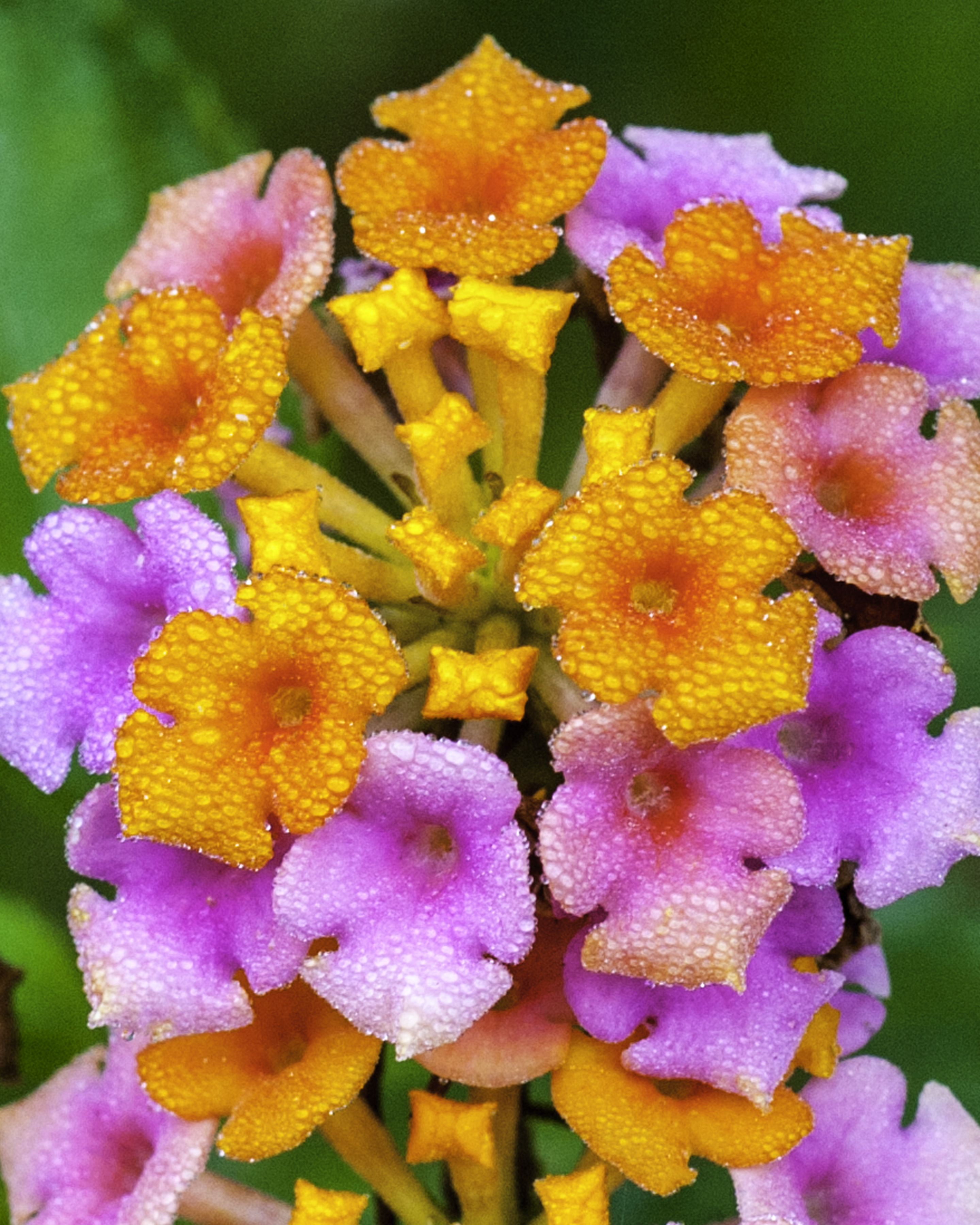 I haven’t decided whether it is the multiple colors or shapes of the flowers that fascinate me most. Or perhaps the water resistance that causes the water to bead.
