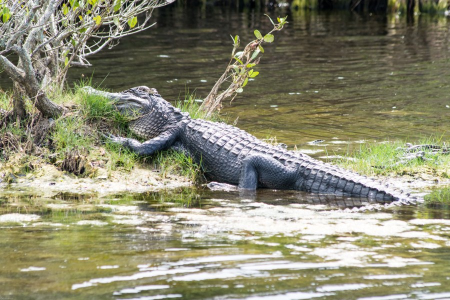 This guy was REALLY big – I guess over 12 feet. If you look closely there are young gators on the right side of the photo. They are living dangerously, since the biggest predators of alligators are larger alligators.