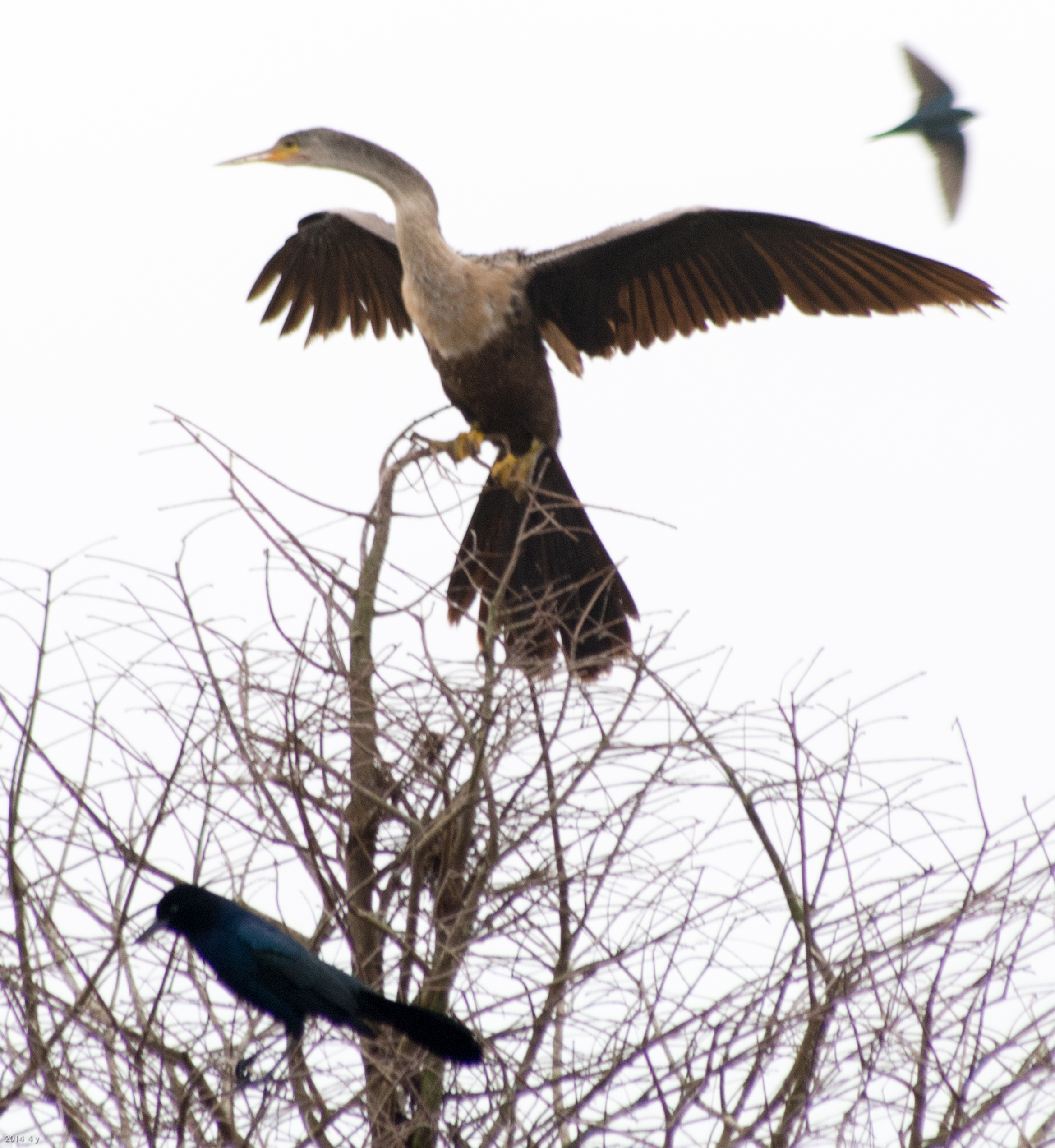 Pleasant surprise when I downloaded this guy. Decent capture of the anhinga, with a boat-tail grackle and a tern-like bird flying by.