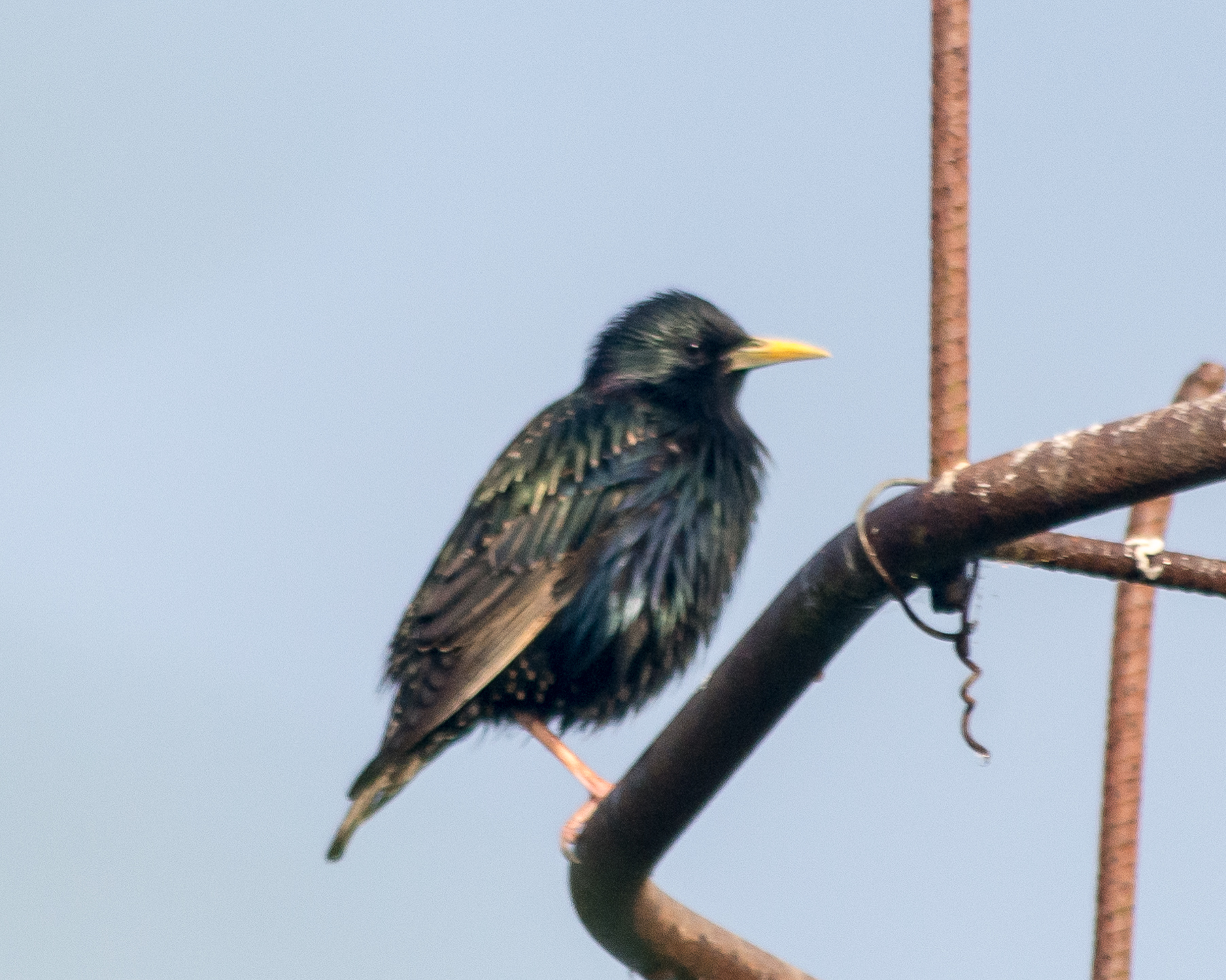 The European Starling was first brought to the US in the early 19th century by Shakespeare enthusiasts. Now among the most numerous song birds in the country. Wonderful coloring.