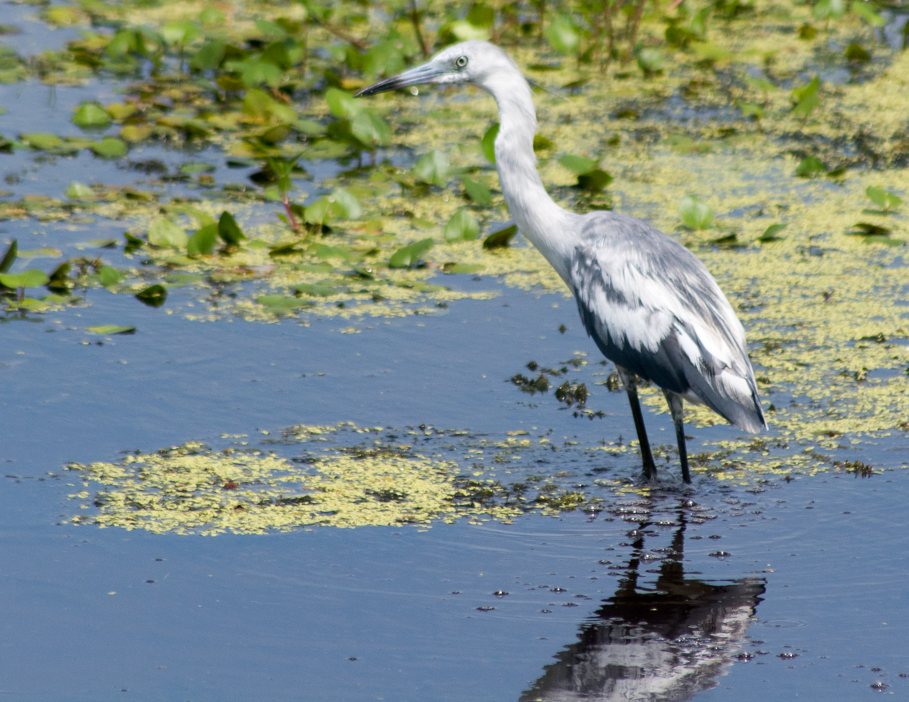 Continuing with the Great Blue Heron, here is a younger sibling. They start life completely white, slowly changes colors over their first year. Often confused (by me) with egrets.