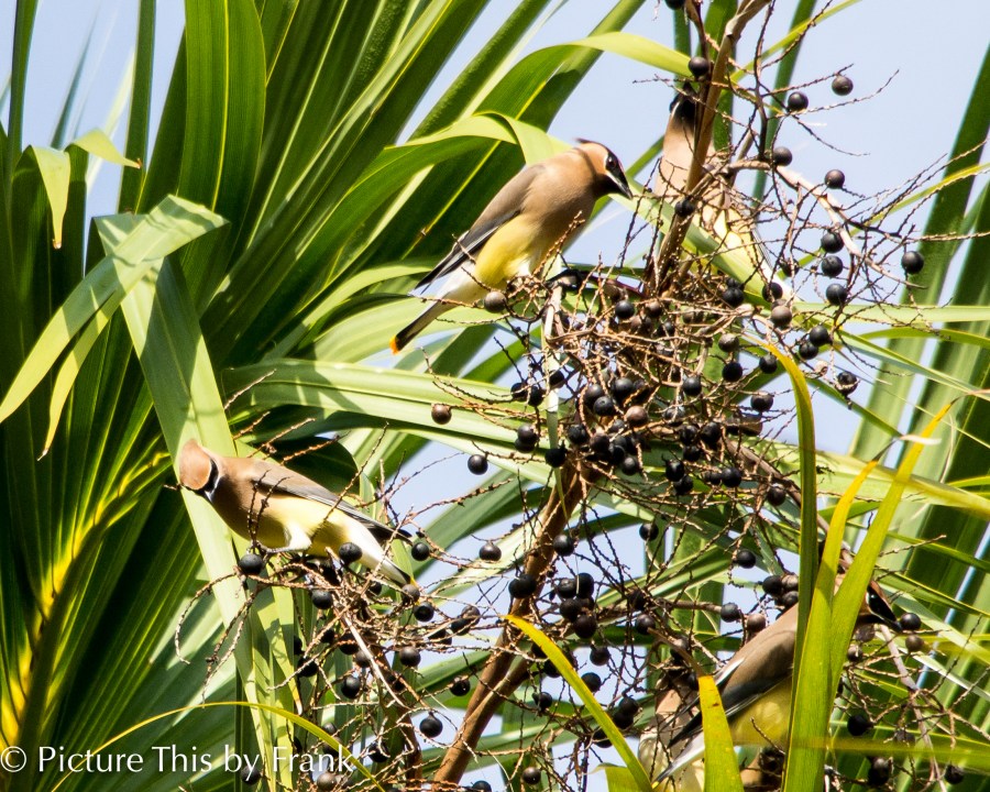 Cedar Waxwings are such pretty birds their colors remind me of a pear. Nice picture.