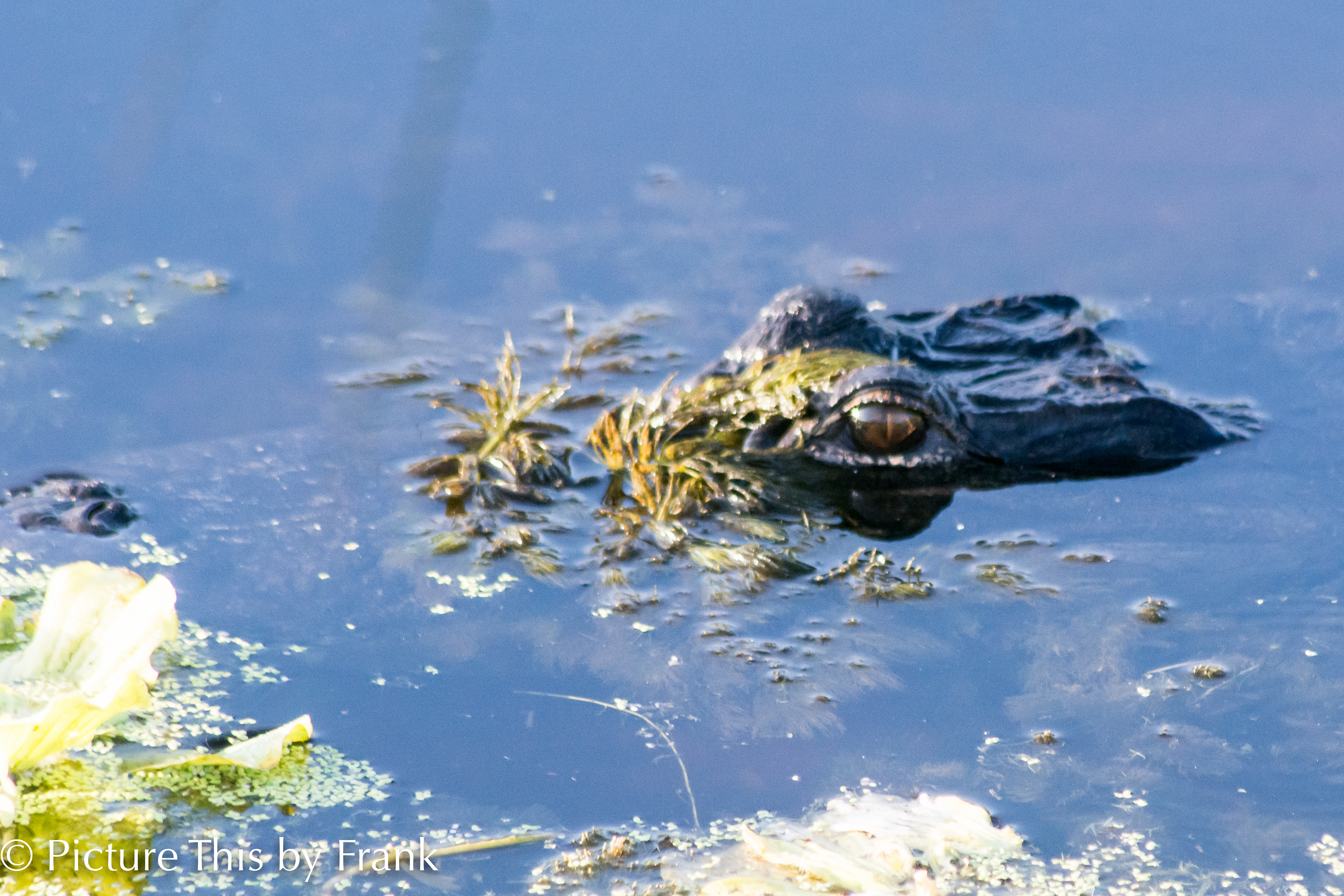 This was quite a violent encounter. In the top picture, one gator has the other in it’s jaws. After the encounter there was a clear winner and the loser left in a big hurry, under the watchful eye if the winner. Although I cannot be sure there was no sign of injury to either.